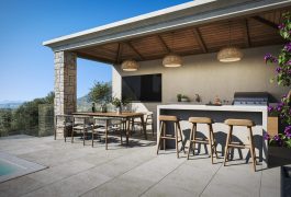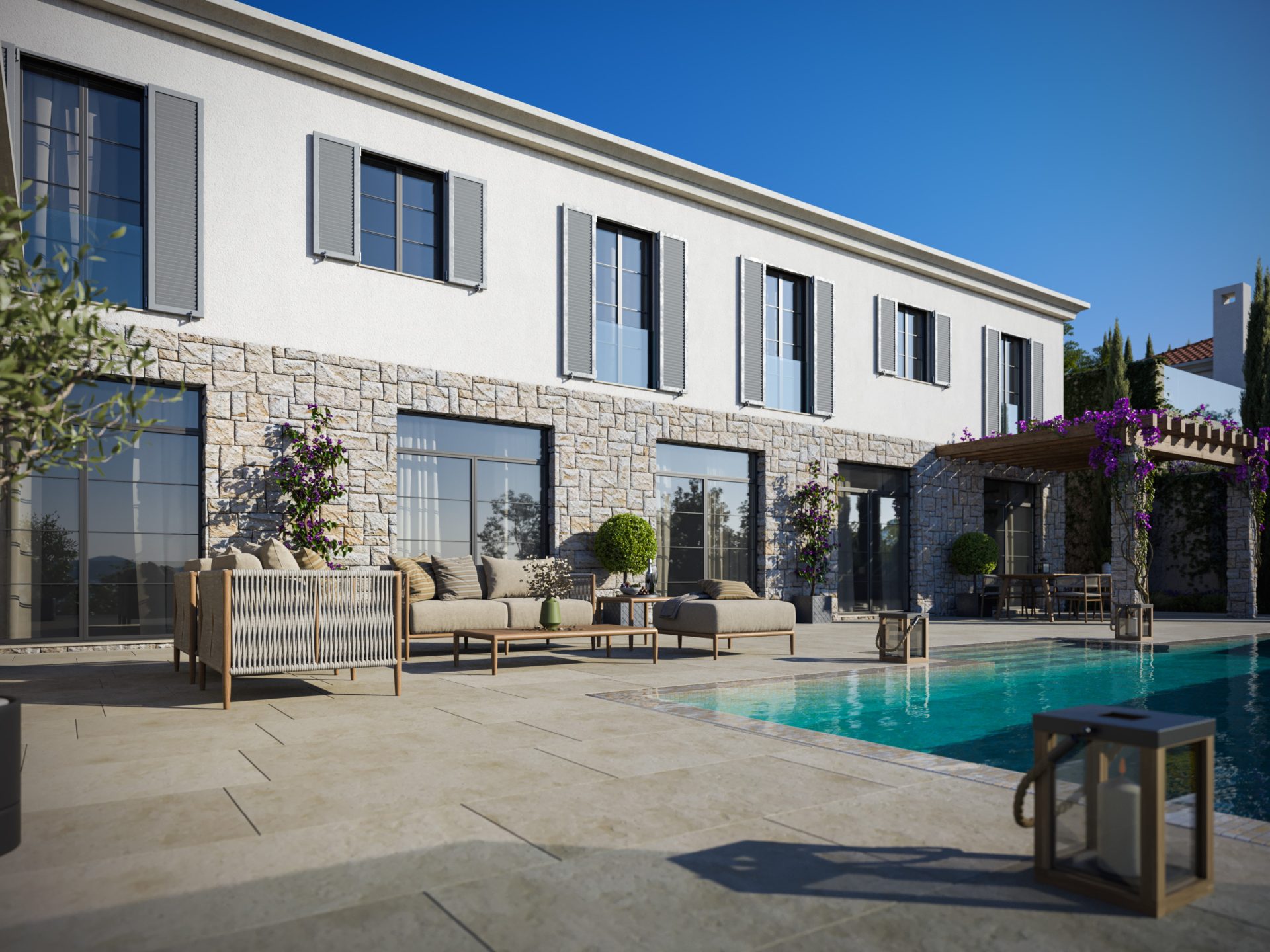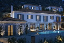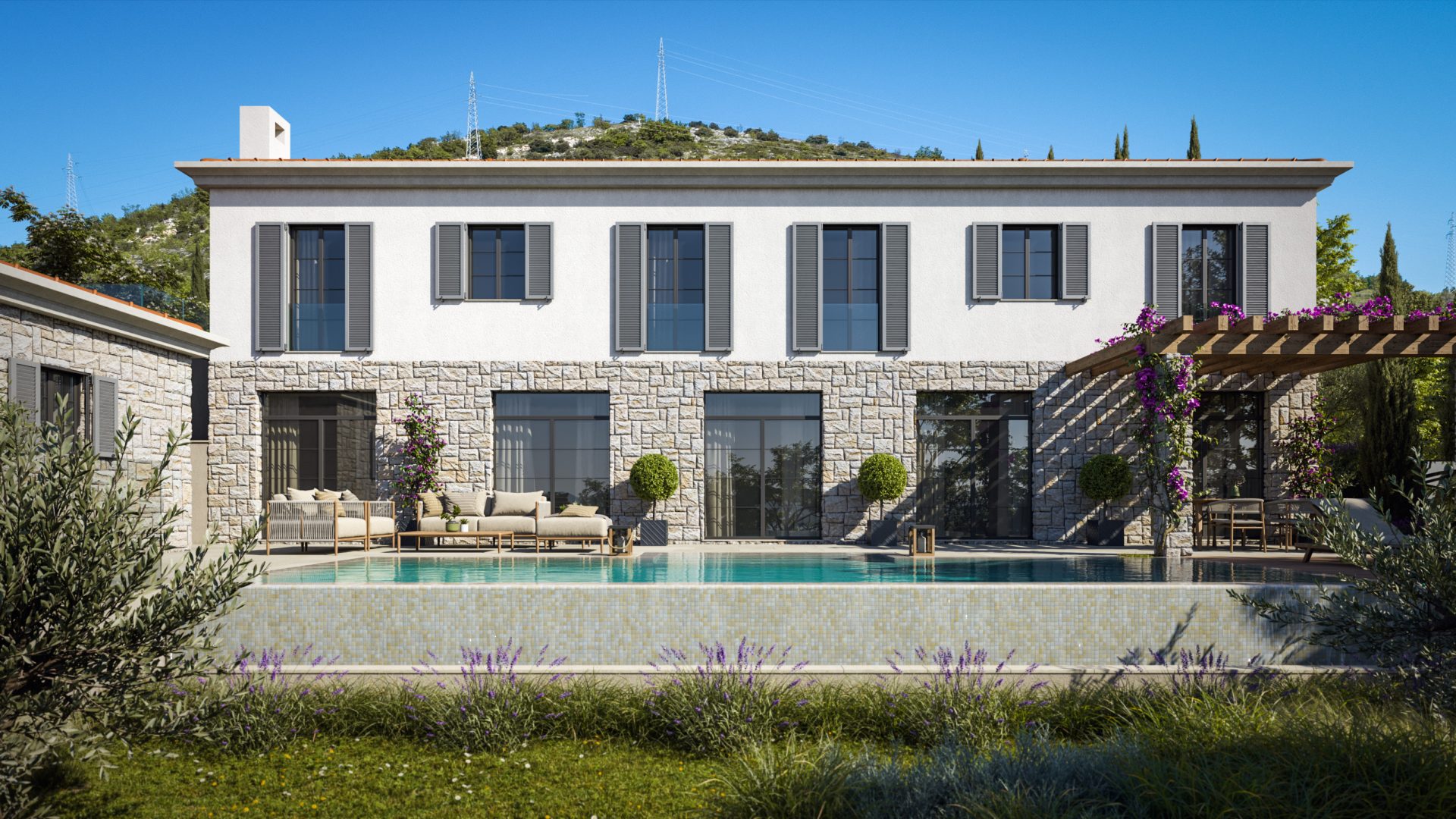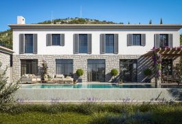 Houses A & B offer 230 sq m of internal space and feature four en-suite bedrooms, an open-plan living and kitchen area, a ground floor WC, and a separate utility room. Externally, each property includes an infinity-edge swimming pool, outdoor kitchen, private parking, and beautifully landscaped gardens.